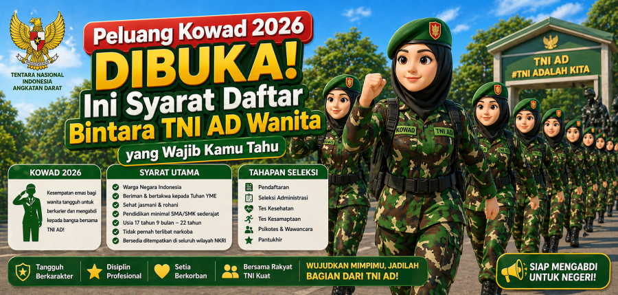 Seleksi Bintara Kowad TNI AD 2026 adalah peluang besar bagi perempuan yang ingin berkarier di dunia militer. Namun, persyaratan yang cukup ketat menuntut persiapan yang serius, baik dari segi fisik, mental, maupun akademik.