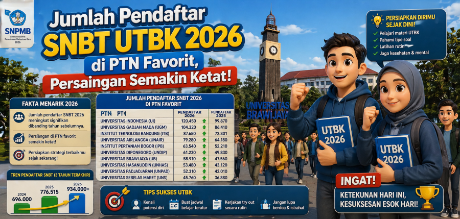 Melihat data di atas, rasio persaingan di PTN favorit sangat tinggi. Dari puluhan ribu pendaftar, hanya sebagian kecil yang berhasil lolos. Artinya, kamu harus memiliki persiapan yang lebih unggul dibanding peserta lain jika ingin tembus kampus impian.