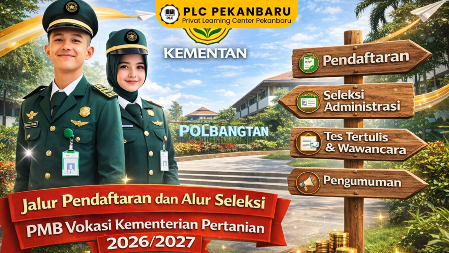 PLC Pekanbaru siap mendampingi calon peserta PMB vokasi kedinasan dengan program bimbingan yang terstruktur, latihan soal, simulasi tes, serta pembinaan mental dan disiplin. Dengan pengalaman membina siswa masuk sekolah dan perguruan tinggi kedinasan, PLC Pekanbaru menjadi pilihan tepat untuk persiapan yang lebih maksimal. Masuk pendidikan vokasi Kementerian Pertanian bukan soal keberuntungan, tapi soal kesiapan. Persiapkan langkahmu bersama PLC Pekanbaru.