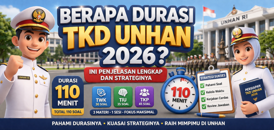 Durasi TKD UNHAN adalah 110 menit untuk 110 soal, dengan sistem yang dirancang agar peserta dapat mengerjakan soal secara lebih optimal. Bukan hanya cepat, tetapi juga tepat dan konsisten. Memahami durasi ini akan membantu kamu menyusun strategi yang lebih matang dan meningkatkan peluang lolos seleksi UNHAN.